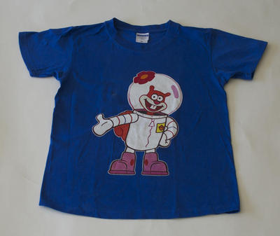 Clothing: Blue T-shirt with Red Sponge Bob Squirrel